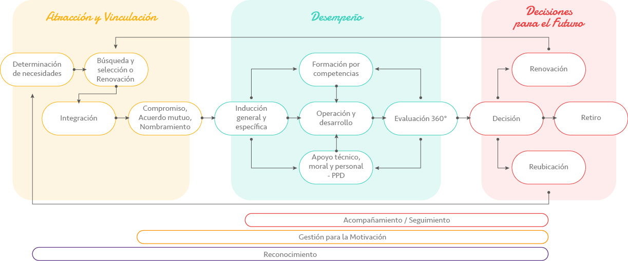 El sistema de gestión de los adultos en el Movimiento Scout comprende la sucesión cíclica de los procesos de atracción, desempeño, y decisiones para el futuro, para cada uno de los cargos y funciones. Esto se denomina ciclo de vida del adulto y busca atraer, trabajar y motivar a los adultos, durante períodos de tiempo establecidos fija y previamente.